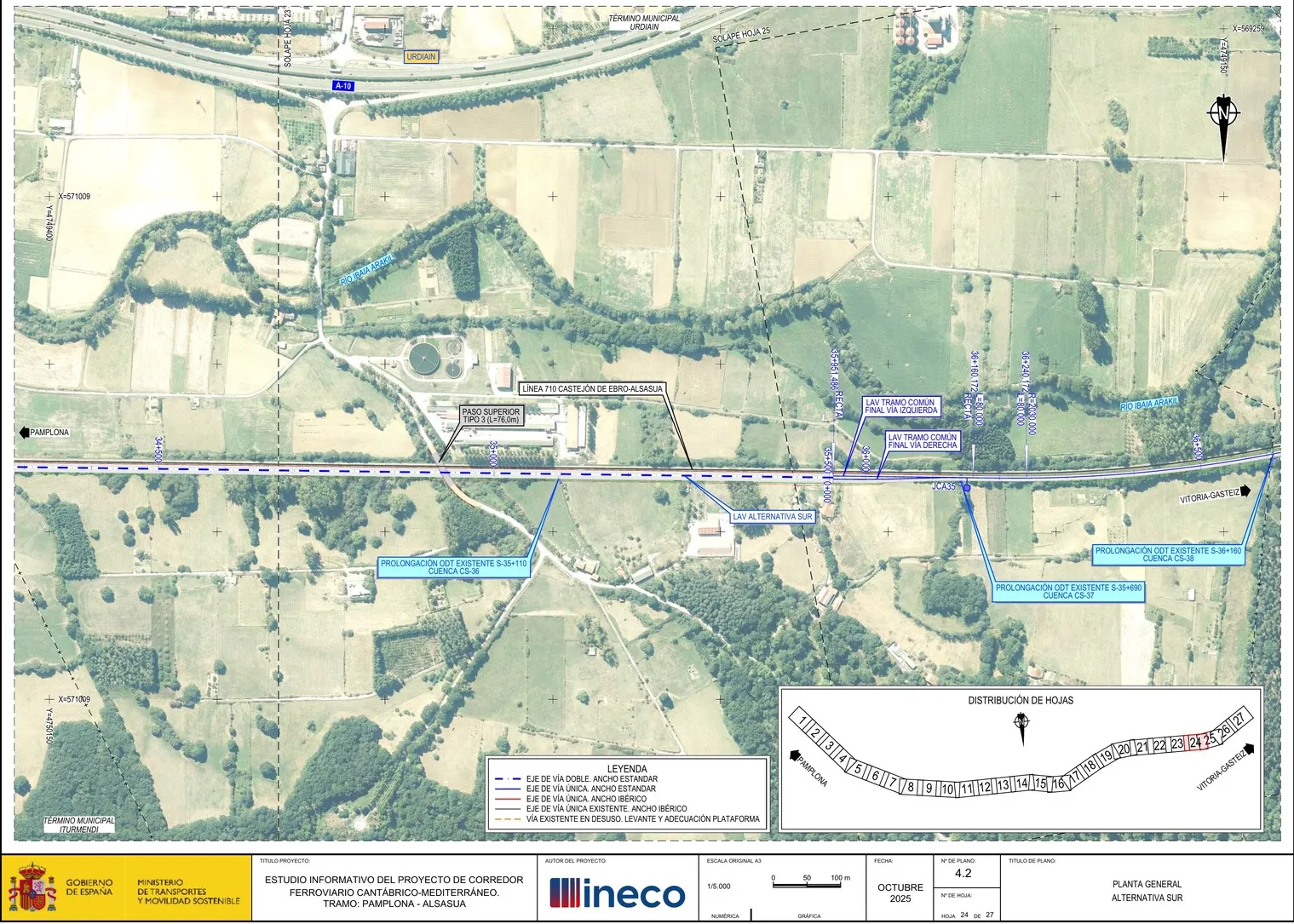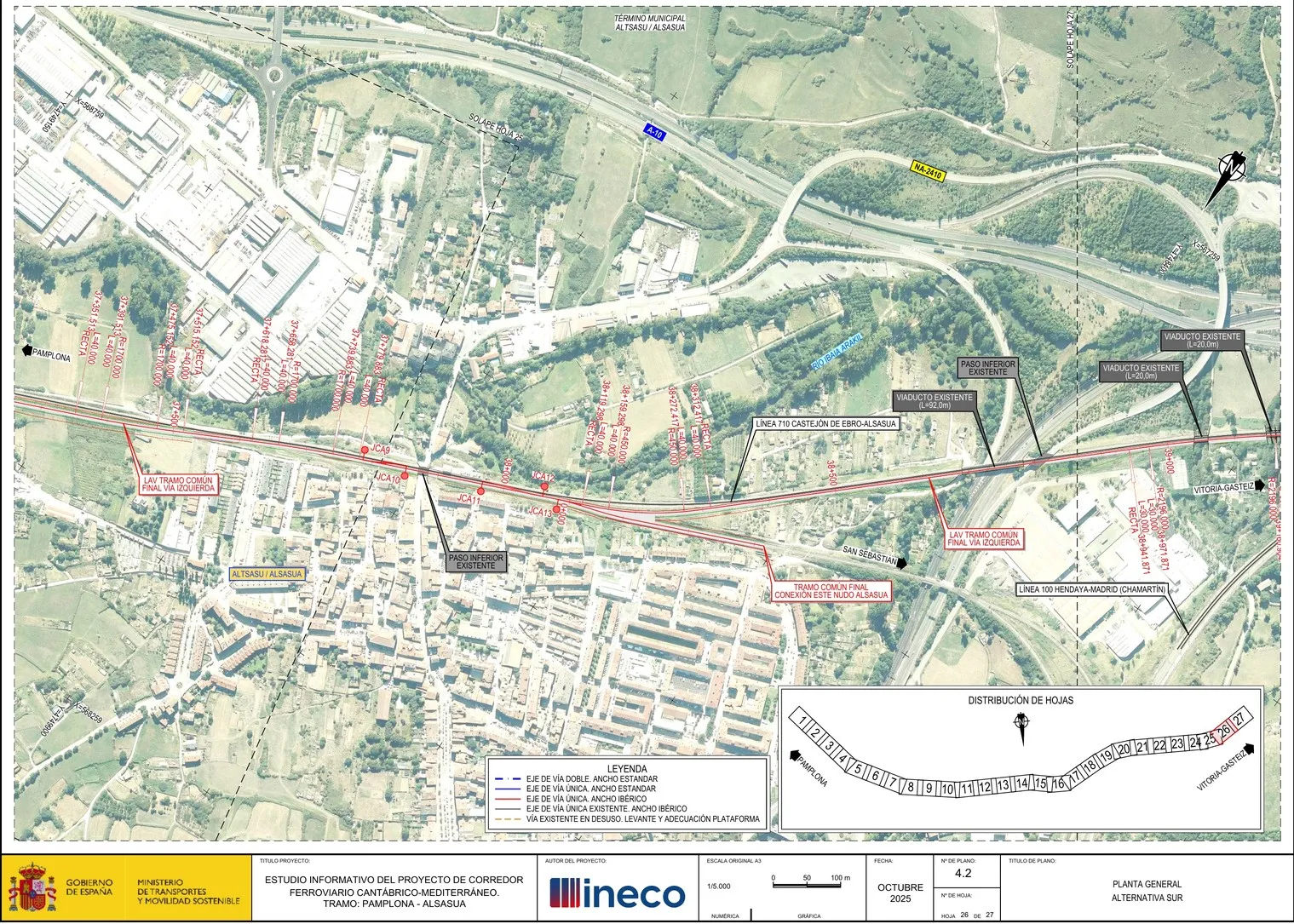 – Ihabar eta Bakaiku arteko AHTren proiektuaren planoak eta afekzioak, Iparraldeko alternatiba