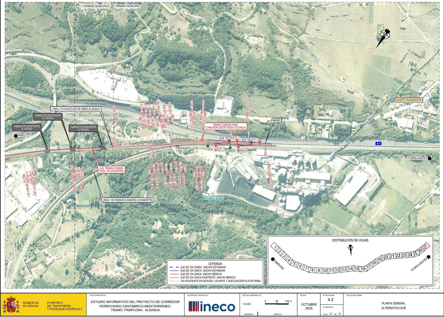 – Ihabar eta Bakaiku arteko AHTren proiektuaren planoak eta afekzioak, Hegoaldeko alternatiba