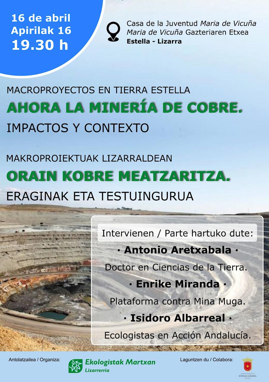 El pasado 13 de marzo se realizó una charla organizada por la Asociación Vecinal Zigoitia Bai en la que participaron los compañeros Pablo Lorente y Eduardo Navascués miembro de Ecologistas en Acción de la Ribera. El motivo de la charla era informar de los 25 años que han pasado desde el inicio del desarrollo de los polígonos para la captación de energías renovables en el sur de Navarra, y de las experiencias que se han obtenido. Se comprueba la falta absoluta de transparencia y planificación pública y democrática de su implantación. A continuación podéis ver el vídeo completo de la charla, así como un pequeño resumen…